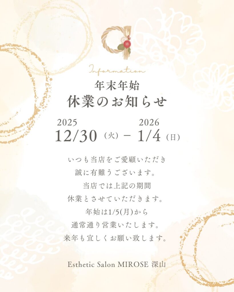 年末年始の休業日のお知らせです。